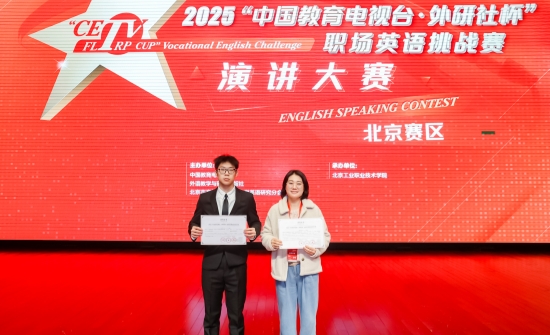 近日,2025“中国教育电视台·外研社杯”职场英语挑战赛演讲与写作大赛(北京赛区)圆满落幕。beats365职业学院首次选派4名学生参赛,在演讲与写作两个赛项中均表现优异,共摘得二等奖2项、三等奖2项,充分展现了学院学子良好的英语语言应用能力、出色的职业素养与昂扬的精神风貌。